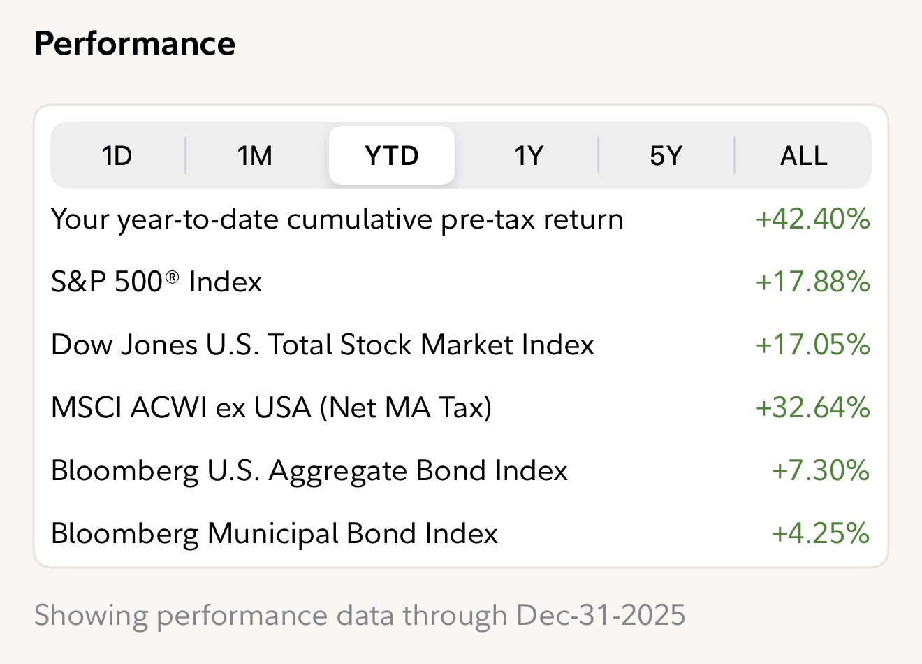 2025 reminded investors of a simple truth that often gets lost in the noise: markets reward discipline, not dogma. Last year was very strong for stocks, with the S&P 500 delivering solid gains, but our goal each year is to significantly outperform the S&P500. We were able to achieve that again this year by more than double what the S&P500 returned. The S&P500 did 17.88% in 2025, while we were able to achieve 42.4% returns during the same timeframe. That is an outperformance of 137%: