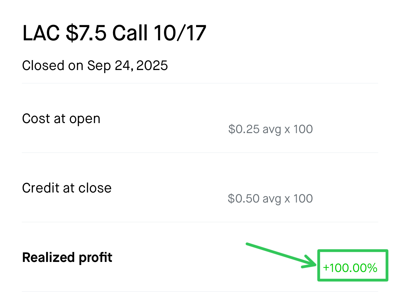 Just like our Intel trade from a couple weeks ago, we also scored big with Lithium Americas, where we got in before the massive run-up and locked in a 100% profit in just one day, as you can see below. But those trades are already behind us. Inside the Investment Club, weâve just built a fresh batch of positions that we believe can benefit heading into the end of the year. If youâre already a Club Member, [CLICK HERE] to log in and see the new buys we made this week. Also, next week is going to be a HUGE week for the stock market, so make sure to attend the private LIVE streams with us, as we have some big trade setups prepared for next week! If you havenât joined the Investment Club yet, and youâre tired of missing out on opportunities like these, now is the time to take action. As a subscriber to this newsletter, you get an exclusive [$200 OFF] when you join today. With that said, I'll see you in the Investment Club this week!