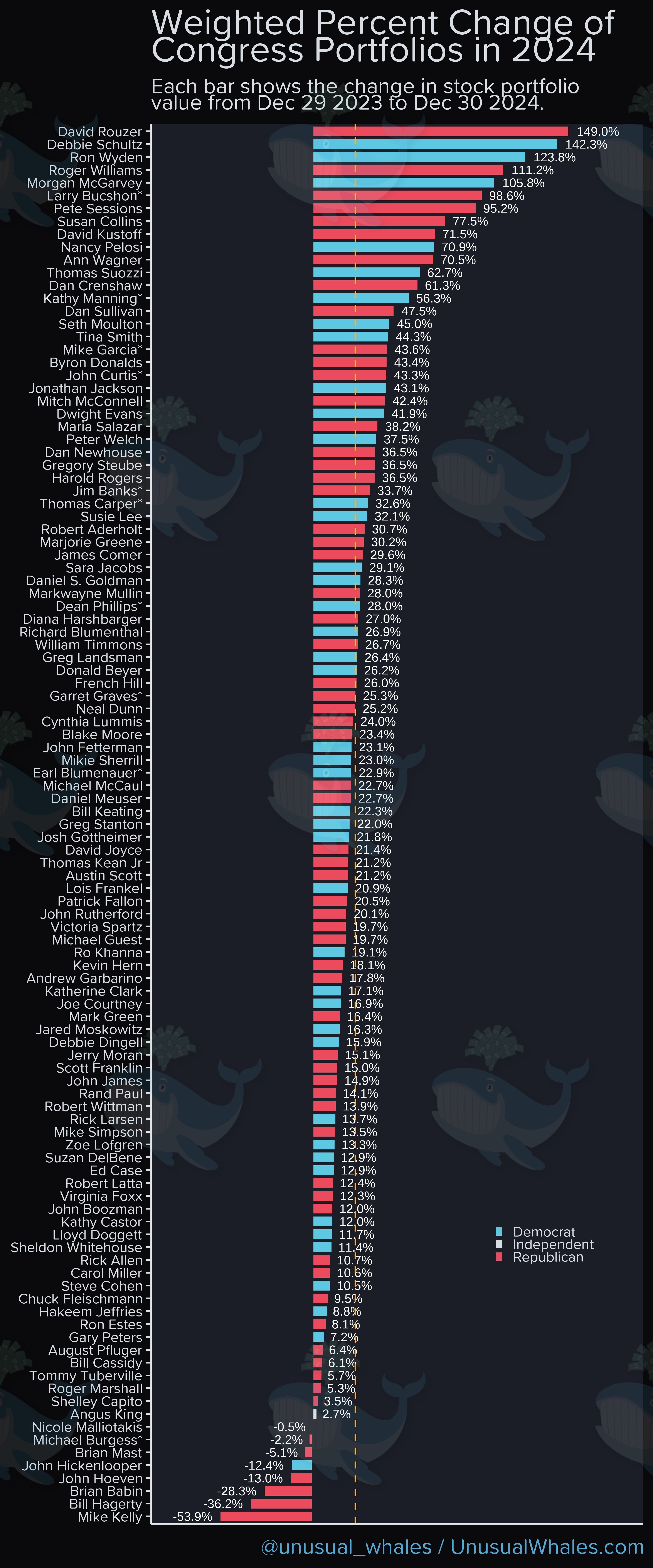 For years, Nancy Pelosi’s trades shaped an entire corner of the retail investing world. Her portfolio’s uncanny timing and consistent outperformance made her one of the most-watched figures on Capitol Hill. But now, with Pelosi stepping away from Congress, the market’s favorite political benchmark is gone, leaving millions of investors wondering: who do we follow next? The answer is already clear. According to the latest data, three congress members have actually outperformed even Pelosi, despite their names going under the radar. As Washington channels trillions into infrastructure, AI, and industrial reshoring, the most connected lawmakers continue to outperform Wall Street hedge funds, despite not having any significant background in finance or economics. With Pelosi retiring, we will be focusing our attention on these three names: David Rouzer, Debbie Schultz, and Ron Wyden.