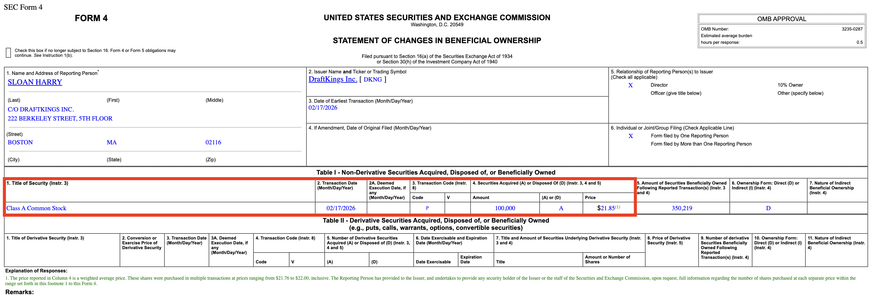 1. DraftKings (DKNG) - Harry Sloan, director, bought roughly $2,100,000 worth of DKNG at $21.85/share on Feb. 17, 2026, but it wasn't reported to the public until Feb. 18, 2026. (Source)