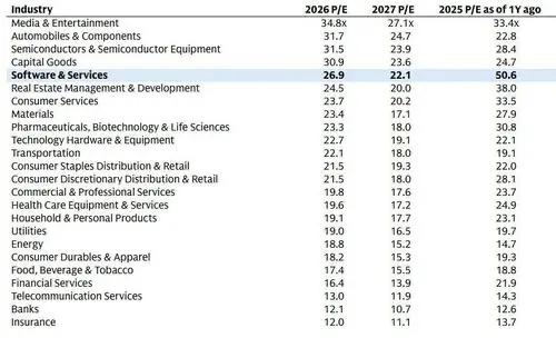 Other stocks we like from Goldman Sachs' list include names such as: Google (GOOG), Cadence (CDNS), and Synopsis (SNPS). Goldman Sachs even goes as far as sharing the historical data on the software sector's valuation multiples, which reveals that the software sector is trading at some of the lowest multiples it ever has historically. As recent data highlights, the entire Software & Services sector has seen its forward Price-to-Earnings (P/E) ratio (a metric used to measure how much investors are willing to pay for a dollar of future profit) violently compress. Just one year ago, the sector traded at a wild 50.6x multiple. Today, it has been slashed in half, trading at just 26.9x for 2026 and projecting down to 22.1x for 2027. For those that don't know, the lower this number is, the better the valuation you're getting on the stock. The market has effectively "thrown the baby out with the bathwater", pricing in a doomsday scenario across the entire sector regardless of underlying business quality.
