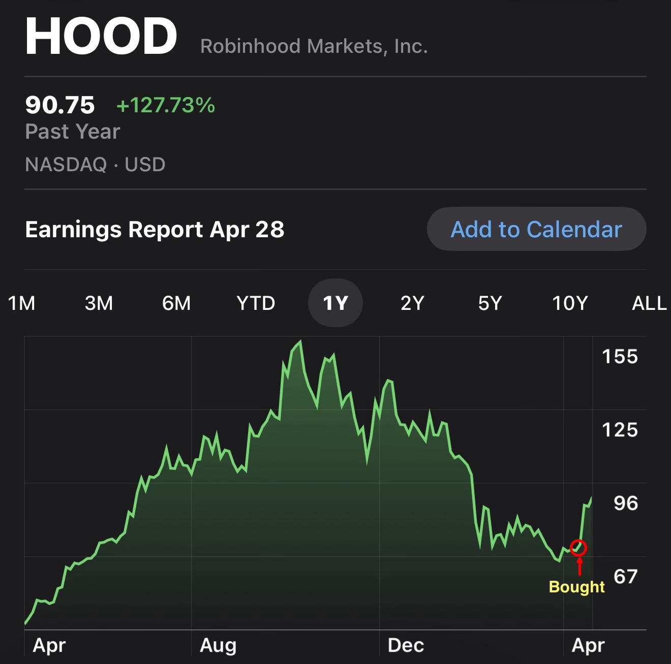 Obviously, the timing couldn't have been any better, as we bought right at the bottom with Robinhood surging over 30% this past week.