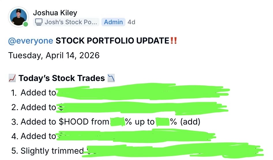 To summarize, the SEC has removed a fundamental bottleneck, transforming the retail landscape from a restricted zone into an open-access arena. This is a structural regime shift that favors the nimble, the digital-native, and the aggressive. We recognized this early and notified our Investment Club Members during our daily private live trading sessions this past week, that we were buying Robinhood heavily. As usual, we always put out a post to summarize our trades to the group everyday, as can be seen down below: