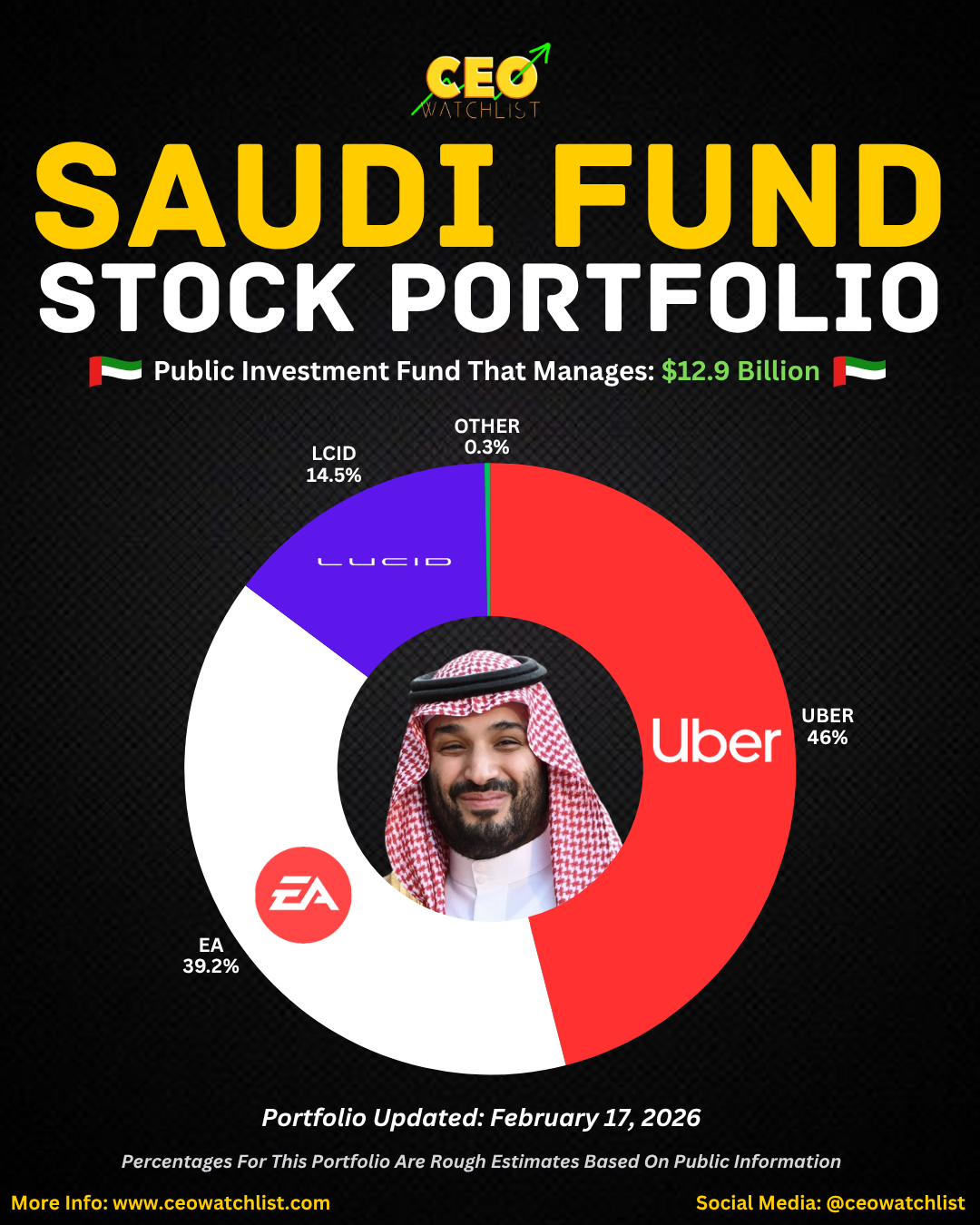 What makes the PIF a unique "Super Investor" is their "infinite" time horizon. Unlike a hedge fund that might worry about a bad quarter, the Saudi Fund invests for decades. This is most evident in their continued support of Lucid (LCID), where they remain the majority shareholder despite the volatility in the EV sector. Their strategy is to provide the massive capital necessary for these companies to scale until they become "un-disruptable" monopolies. So for the average investor, the Saudi Fund strategy probably wouldn't make a lot of sense, but it is always nice to see where their long-term conviction is, becuase if you were sitting on the fence about owning Uber or Electronic Arts, seeing the high conviction the Saudis have in these names may sway your decision one way or the other. Compared to other "Super Investors" we track for you all, the Saudi Fund is NOT one we pay as much attention to, as their time horizon is way too long to maximize short-term gains. At CEO Watchlist, our goal is to focus on high-growth investing that yields high returns and we believe that by following the Saudi Fund, it would hinder our gains. With that being said, we give the Saudi Fund portfolio a 4/10.