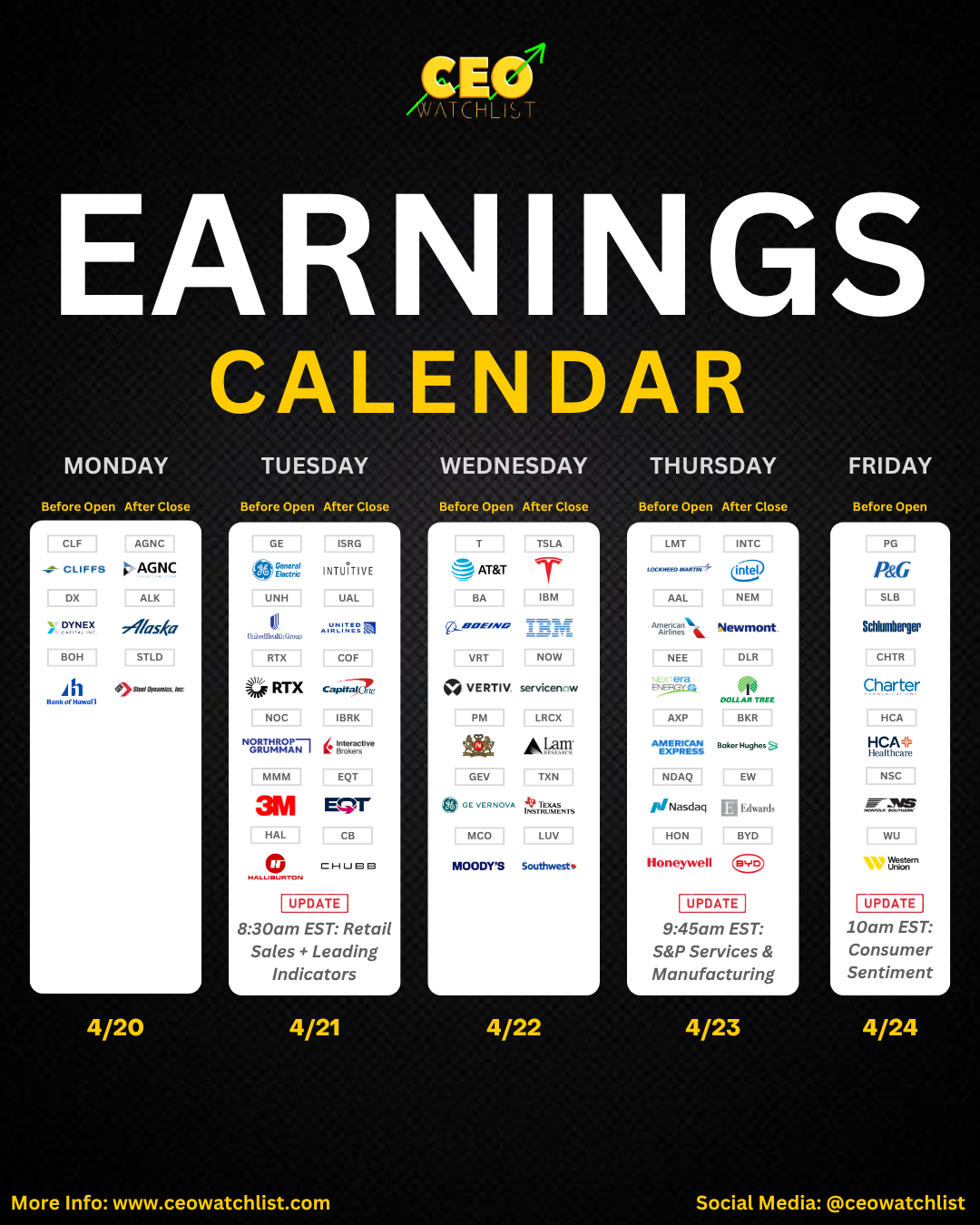 We are looking for more than just earnings beats; we are looking for guidance that gives us peace of mind that these companies have a clear runway of growth during such volatile economic and geopolitical times. If these bellwethers can prove they have the pricing power to maintain margins, the rally can continue. If they falter or geopoliticial instability ticks up, then this last week's ceasefire euphoria in the Middle East will evaporate as quickly as it arrived. For those of you who are members of the CEO Watchlist Investment Club, please make sure to have your notifications turned on in the app. If they aren't turned on yet, then you can [CLICK HERE] to login and adjust your settings! We will be providing real-time updates and deep-dive analysis as these reports break live, ensuring you have the context needed to trade the volatility.