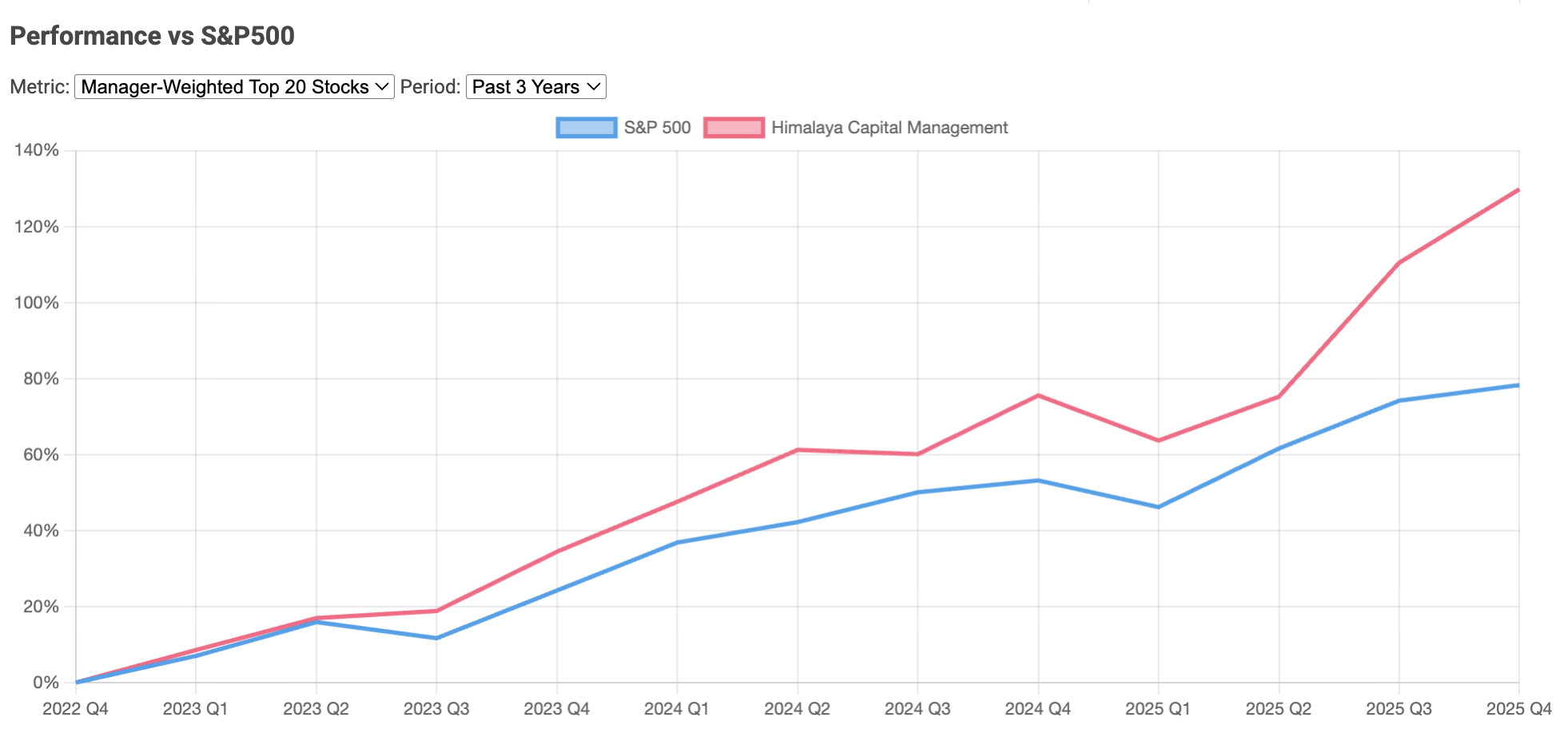 His only major change this quarter was a new buy in Crocs Inc (CROX), while he maintained pretty much everything else exactly the same, signaling that he still has bery high conviction in "Big Tech" as almost 50% of his entire portfolio is in Google alone. Now some of you may be questioning the performance of such a highly concentrated portfolio, but Li Lu wouldn't be sitting at the same table as the greats like Buffett and Munger, if he was anything less than extraordinary. That's why the performance of this concentrated strategy speaks for itself. Over the past 3 years, Li Lu has delivered a return of roughly 130%, significantly outpacing the S&P 500’s 78% return, as you can see below: