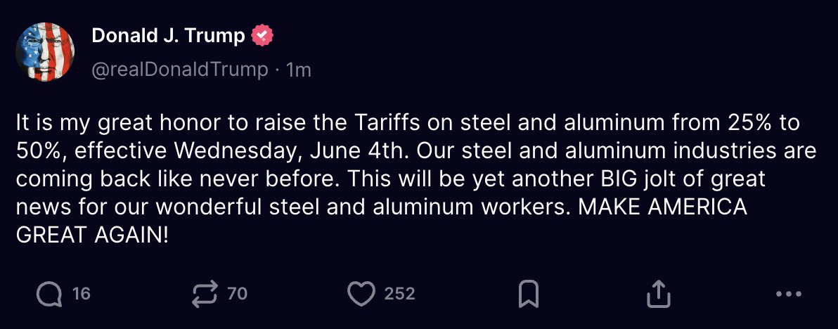 Conventional wisdom says trade wars hurt everyone. But what if that's wrong? Trump’s decision to double tariffs on foreign steel, from 25% to 50%, isn't just political theater. It’s a forced acceleration of a long-overdue reshoring movement. While pundits focus on legal battles and diplomatic blowback, investors should be asking a sharper question: Which American companies are now strategically positioned to absorb demand, command pricing power, and scale into protected market share? Because when governments set the rules, capital flows accordingly.