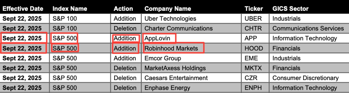 Most investors were stunned on Friday when Robinhood (HOOD) and AppLovin (APP) were officially added to the S&P 500, triggering an immediate surge of more than 7% after the announcement. But if you’ve been following our newsletters, you shouldn’t have been surprised at all. Just last week, we laid out in detail how these two stocks fit every single inclusion criteria, naming them in our "Top 5 Most Likely Candidates to be Added Next". This wasn’t luck. It was the result of a system we’ve refined for years, one that consistently spots these opportunities before the headlines.